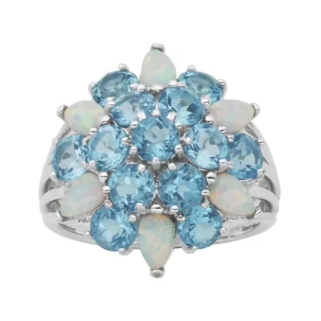 Genuine Swiss Blue Topaz and Lab-Created Opal Cluster Ring