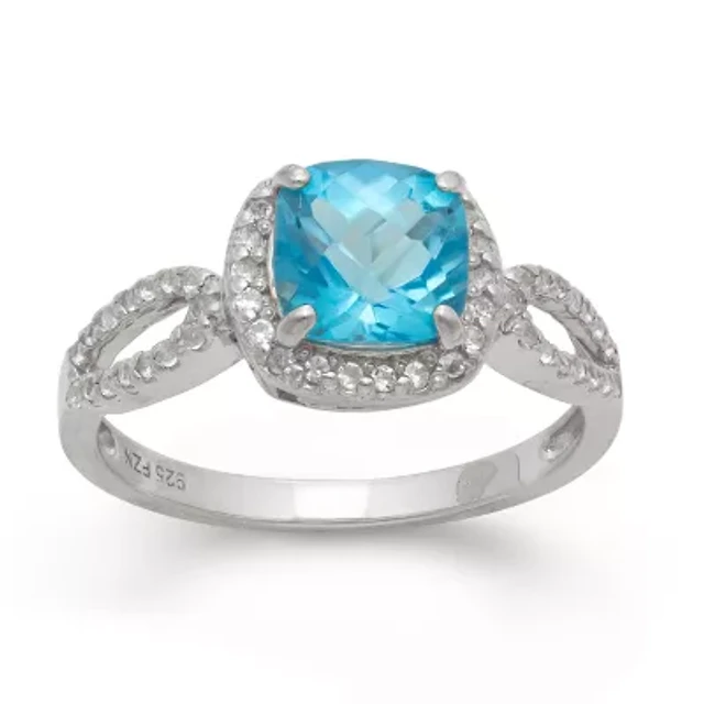 Genuine Swiss Blue Topaz & Lab Created White Sapphire Sterling Silver Ring