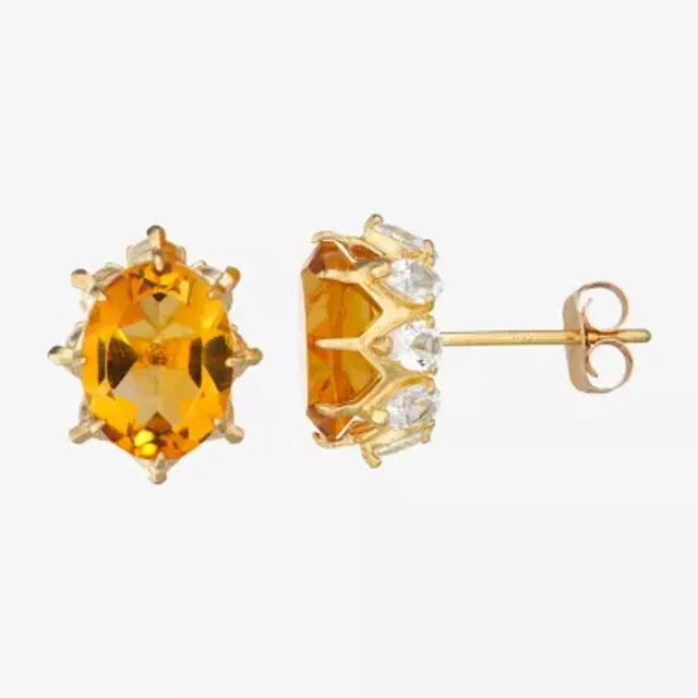 Genuine Yellow Citrine 10K Gold 10mm Stud Earrings