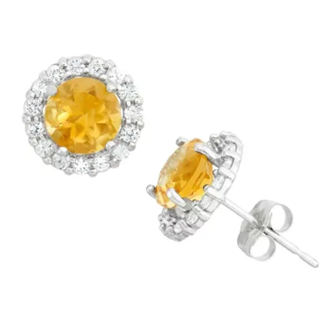 Genuine Yellow Citrine 10K White Gold 9mm Stud Earrings