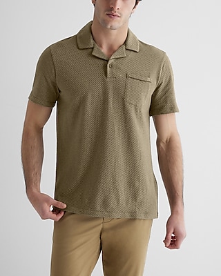 Textured Chevron Cotton-Blend Short Sleeve Sweater Polo