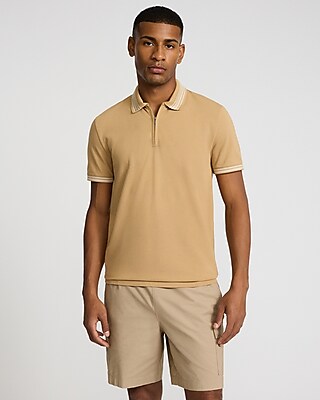 Stripe Tipped Perfect Pima Cotton Pique Zip Polo