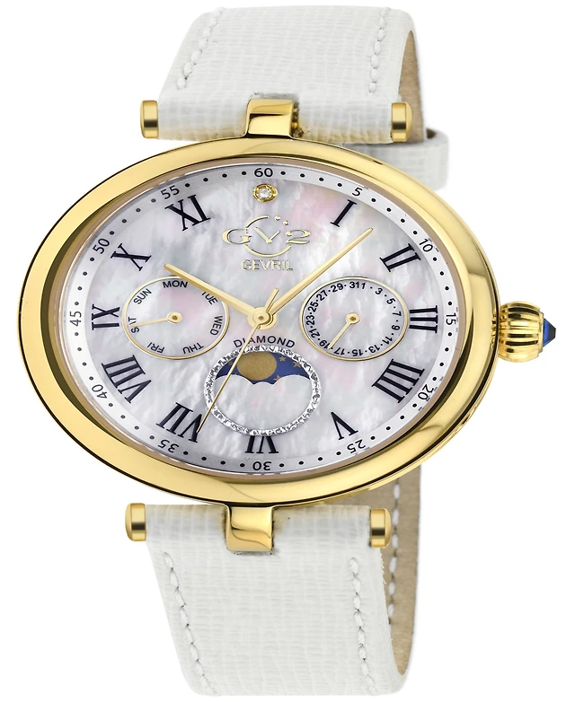Gevril Women's Florence Swiss Quartz Italian White Leather Strap Watch 36mm