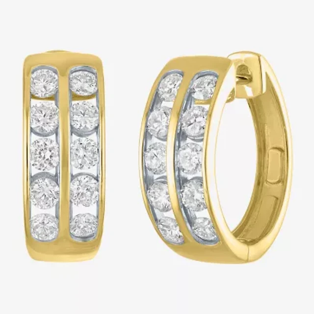 (H-I/Si2) Womens 1 CT. T.W. Lab Grown White Diamond 10K Gold 15.1mm Hoop Earrings