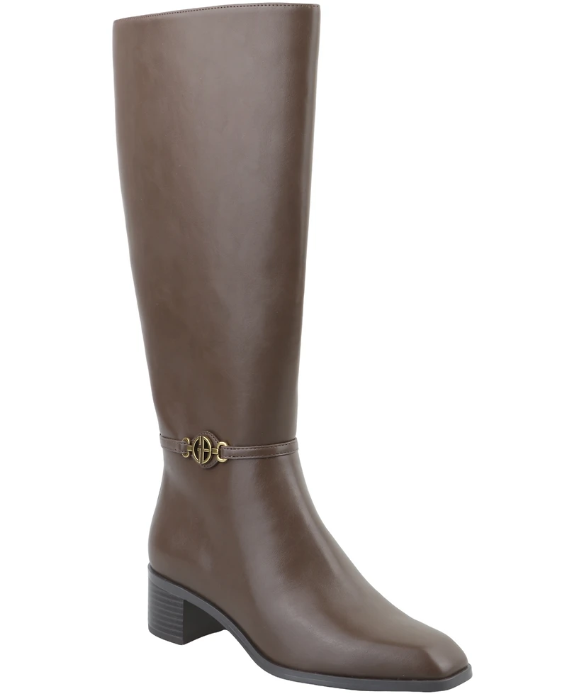 Classy style will be a part of your footwear collection with this pair of go-to dress boots from Giani Bernini Shayyla, featuring a dainty and attractive branding buckle detail. The narrow calf circumference and knee-high shaft make these a well-fitting choice, perfect for teaming on dresses and skirts.