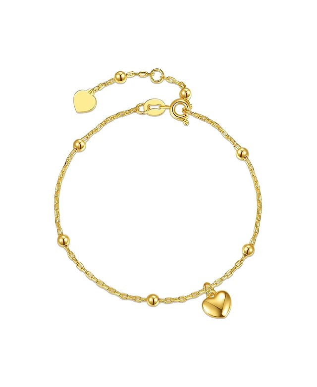 14K Gold Plated Heart Bead Charm Bracelet