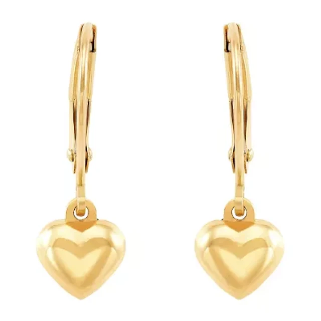 Girls 10K Gold Heart Drop Earrings