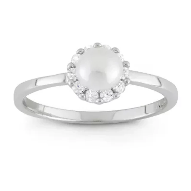 Womens Diamond Accent White Cultured Freshwater Pearl Sterling Silver Round Halo Cocktail Ring