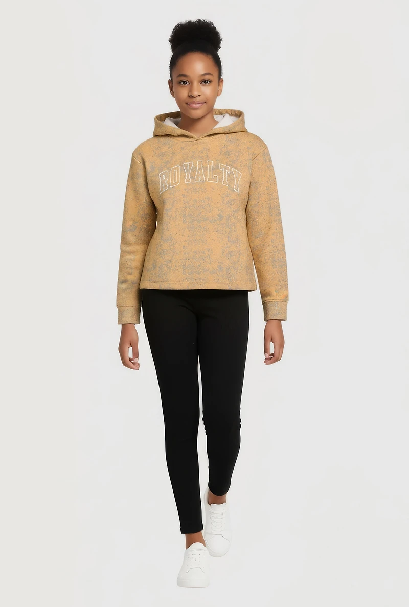 Girls Acid Wash Royalty Graphic Hoodie and Leggings