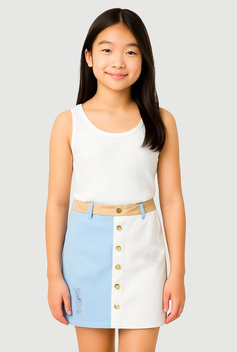 Girls Color Blocked Denim SkirtGirls Color Blocked Denim Skirt