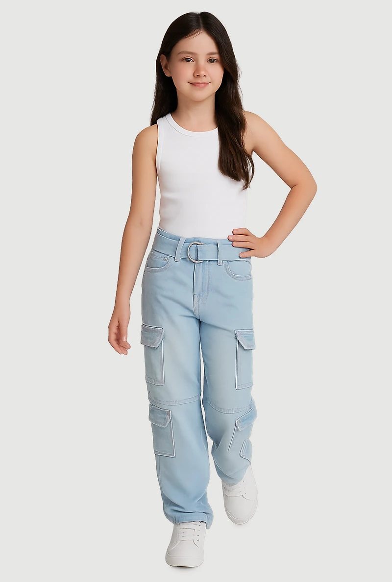 Girls D Ring Belted Cargo Straight Leg Jeans in Ponce, PR