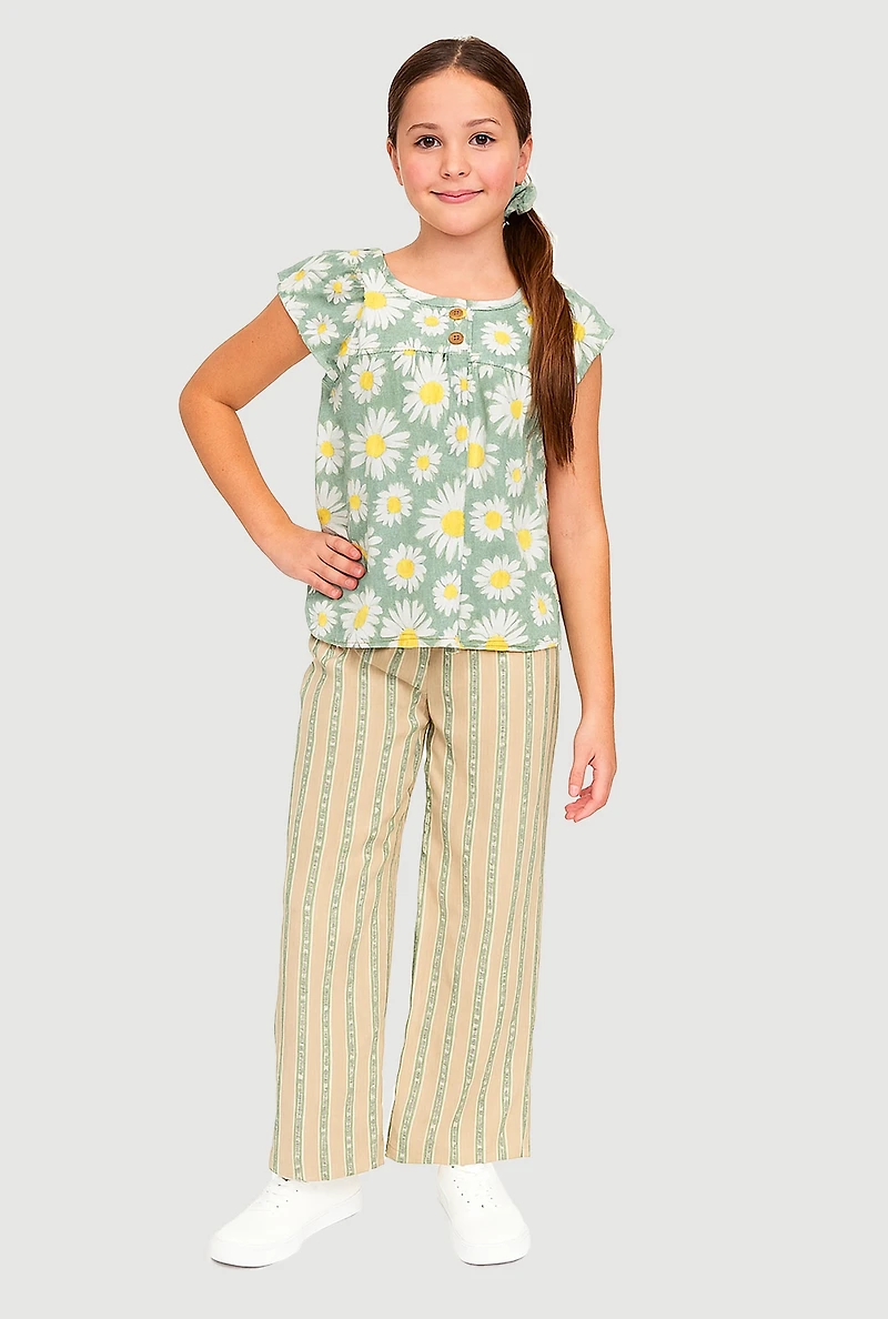 Girls Daisy Print Blouse and Striped Pants in Ponce, PR