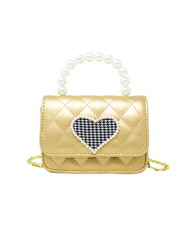 Girl's Gold Quilted Pearl Handle Heart Bag