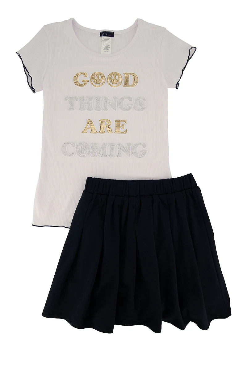 Girls Good Things Are Coming Tee and Pleated Skirt