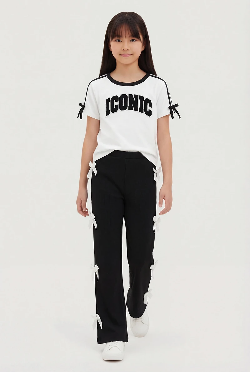 Girls Iconic Chenille Graphic Patch Tee and Side Bow Pants in Ponce, PR