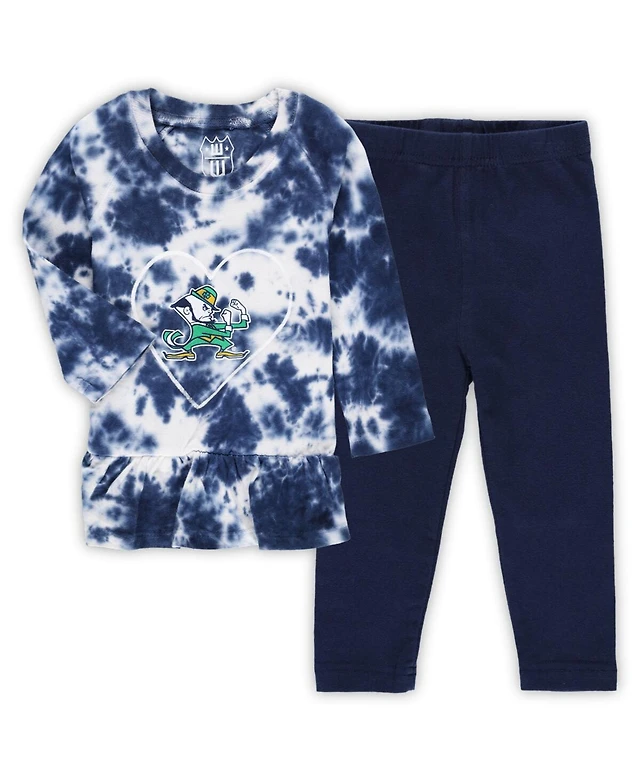 Girls Infant Wes & Willy Navy Notre Dame Fighting Irish Tie-Dye Ruffle Raglan Long Sleeve T-shirt and Leggings Set
