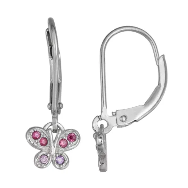 Girls Lab Created Cubic Zirconia Sterling Silver Butterfly Drop Earrings