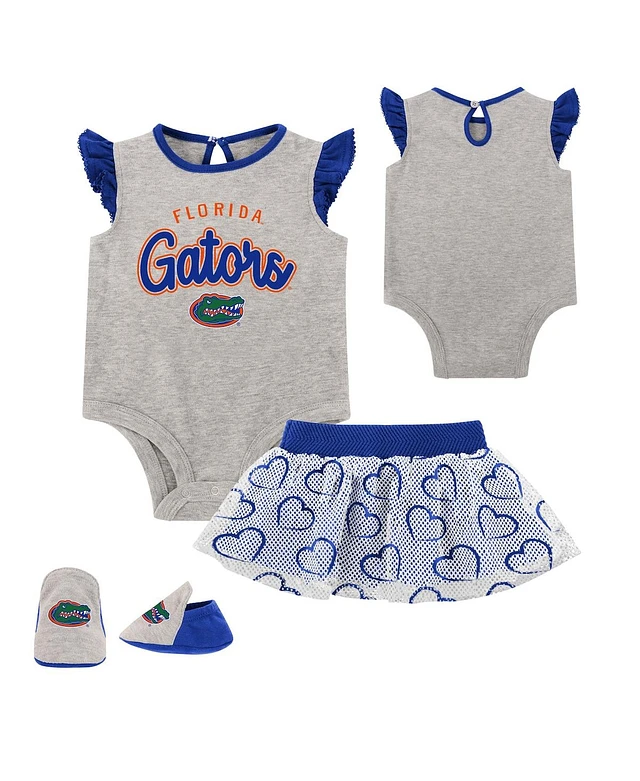 Girls Newborn Heather Gray Florida Gators All Dolled Up Bodysuit, Skirt and Bootie Set