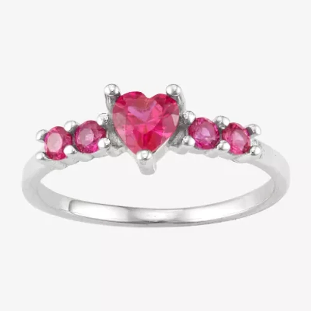 Womens Diamond Accent Lab Created Red Ruby Sterling Silver Heart Cocktail Ring