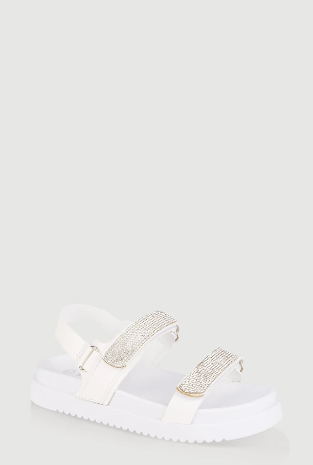 Girls Rhinestone Double Banded Velcro Ankle Strap Sandals