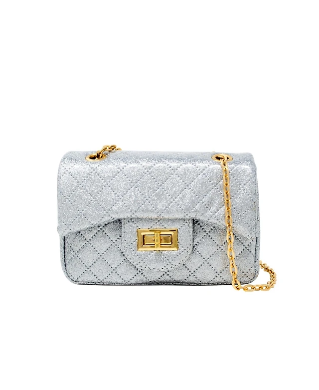 Girl's Silver Classic Quilted Sparkle Mini Handbag
