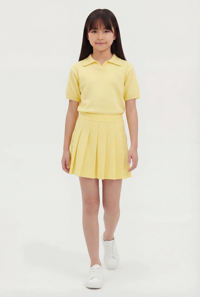 This mid-length pleated skirt is designed for girls who need a versatile piece for casual days. It features a mid rise waist and a pull-on style for easy dressing. The solid pattern keeps it simple, making it easy to pair with a variety of tops for school or play.