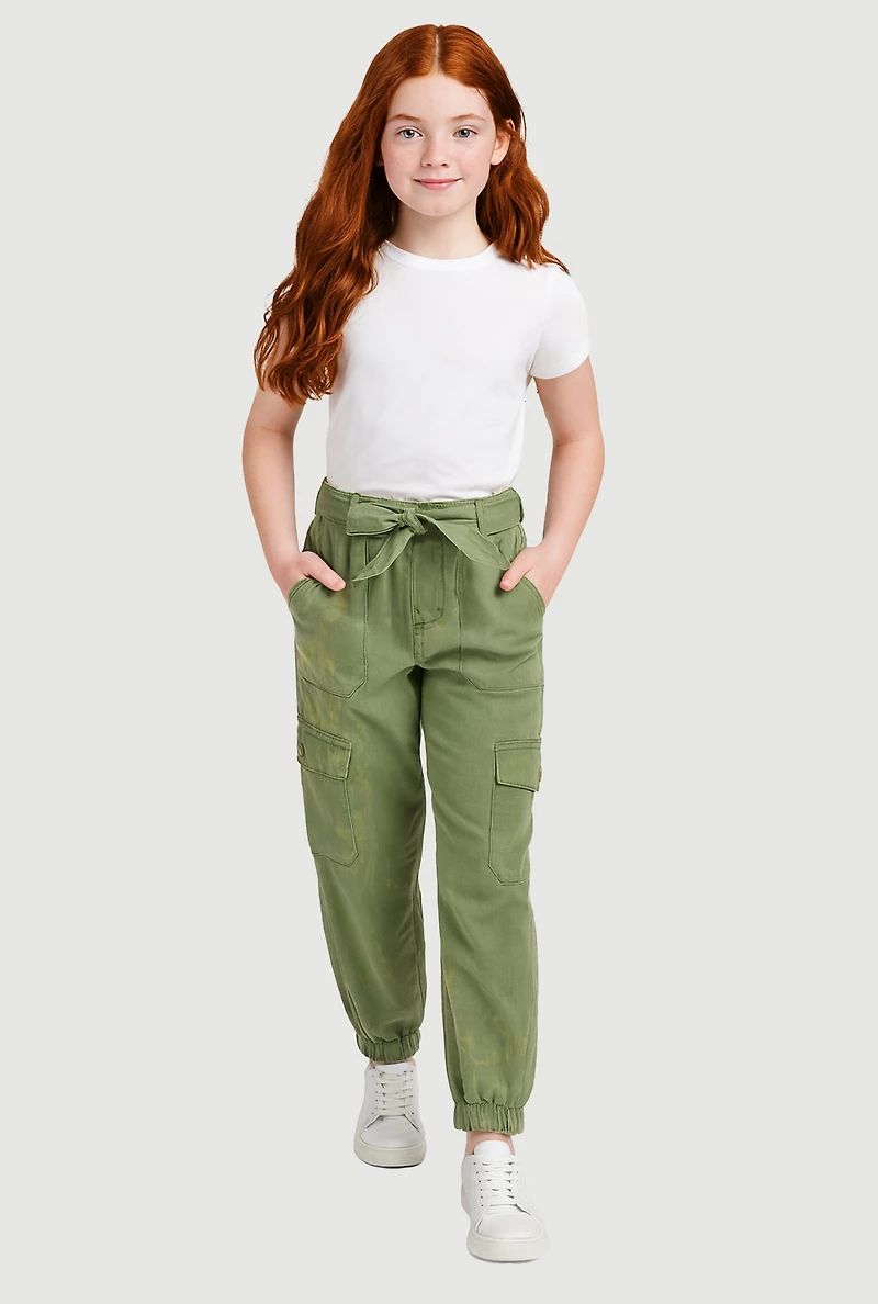 Girls Twill Cargo Joggers with Tie Waist Belt in Ponce, PR