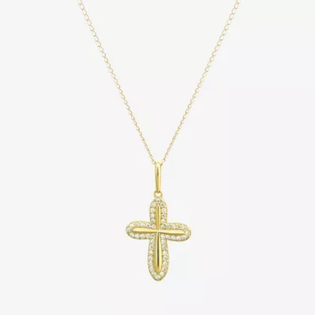 DiamonArt® Womens White Cubic Zirconia 14K Gold Over Silver Cross Pendant Necklace