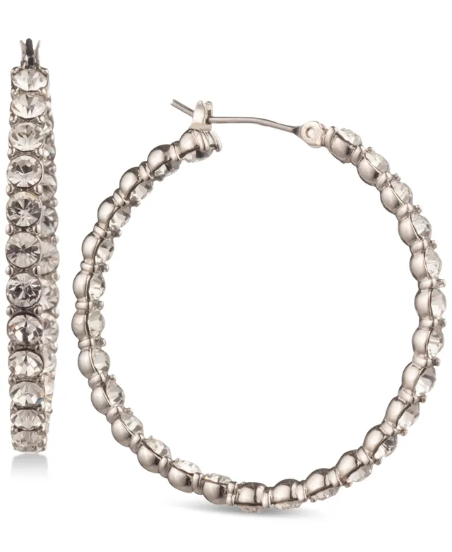 Lauren Ralph Lauren Silver-Tone Pave In & Out Medium Hoop Earrings