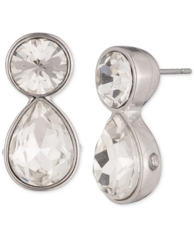 Givenchy Silver-Tone Mixed Cut Cubic Zirconia Double Drop Earrings