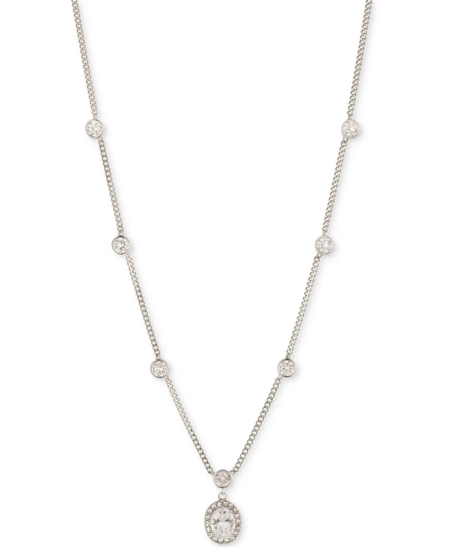 Givenchy Silver-Tone Crystal Cubic Zirconia Lariat Necklace, 16" + 3" extender