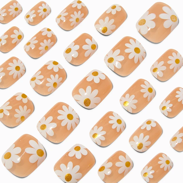 Glitter Daisy Short Square Vegan Faux Nail Set - 24 Pack