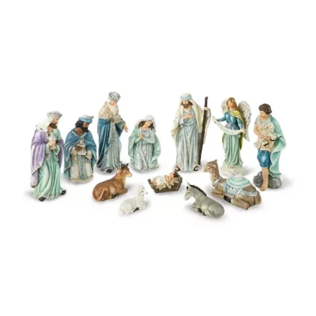 Glitzhome 12pcs Blue Resin Figurine Nativity Set