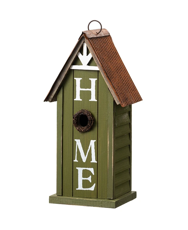 Glitzhome 14.75" H Washed Green Distressed Solid Wood " Home" Inspiration Single Family Decorative Outdoor Garden Birdhouse