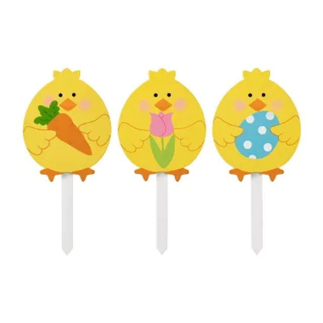Glitzhome 15" Set Of 3 Chick Stake Easter Yard Art
