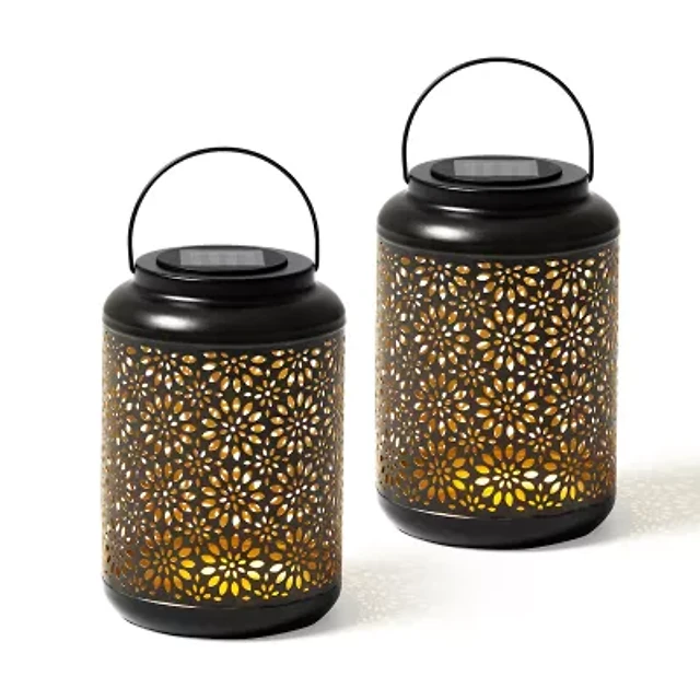 Glitzhome 2-pc. 8.75" Metal Solar Decorative Lantern