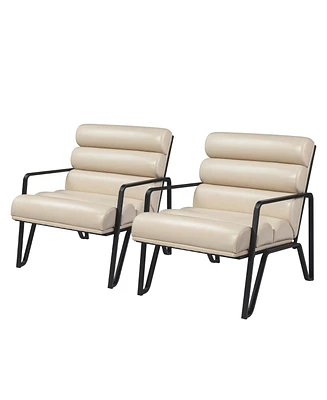 Glitzhome 2-Pc. Leatherette Mid-century Modern Hunter Accent Stool and Chair