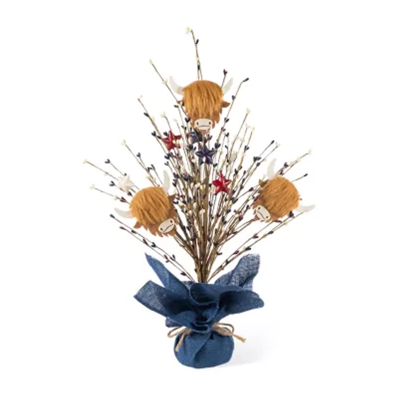 Glitzhome 21" Highland Cow And Berry Tabletop Tree