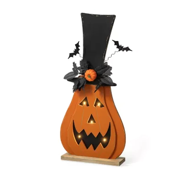 Glitzhome Lighted Wooden Pumpkin Decor Halloween Indoor Porch Sign