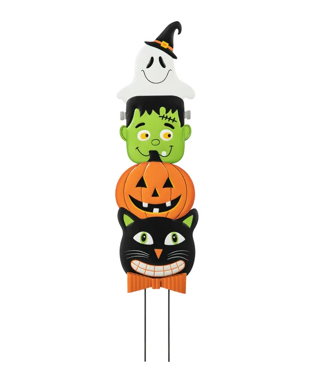 Glitzhome 42.5" H Halloween Metal Stacked Ghost, Frankenstein, Black Cat Pumpkin Yard Stake or Hanging Decor