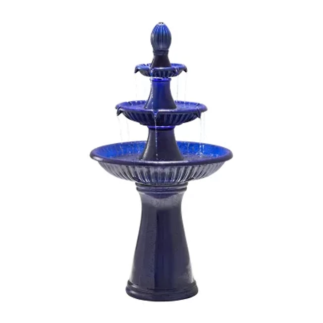 Glitzhome 45.25H Cobalt Blue 3-Tier Outdoor Fountains