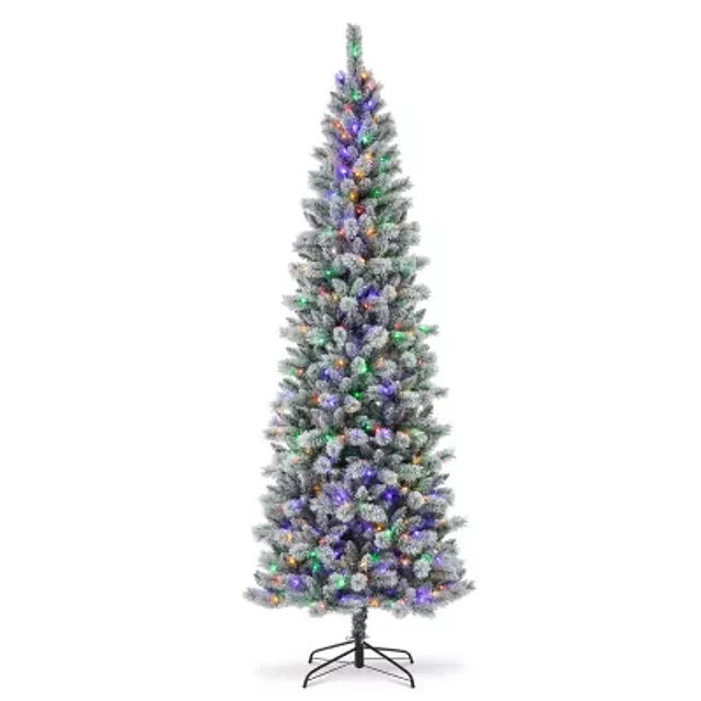 Nearly Natural Flocked Pencil Faux 9 Foot Pre-Lit Christmas Tree