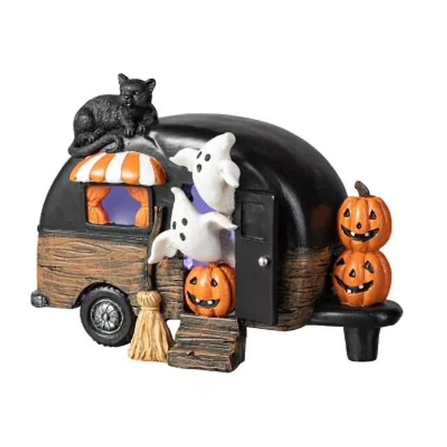 Glitzhome 9.25"Camperw/Ghost & Pumpkin & Cat Table Halloween Tabletop Decor