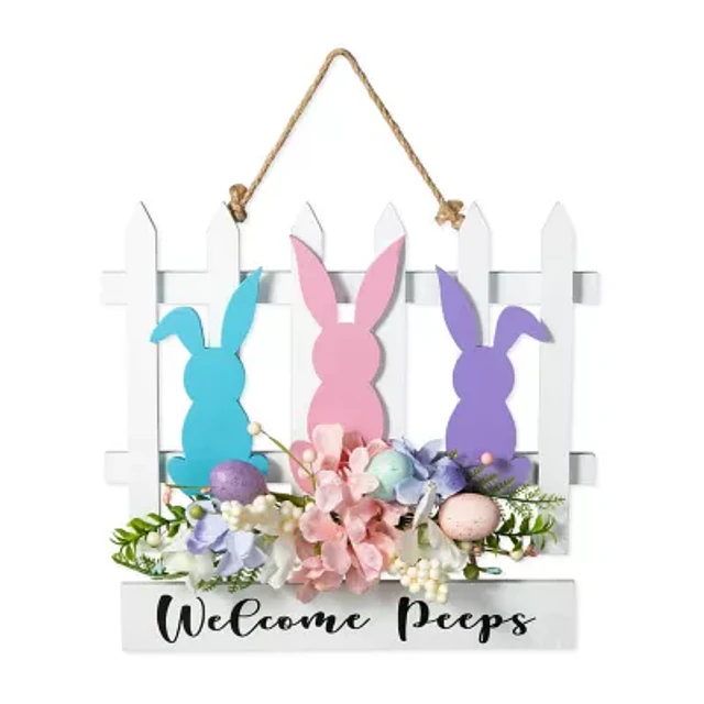 Glitzhome Easter Wooden Bunny Fence Door Hanger Wall Sign