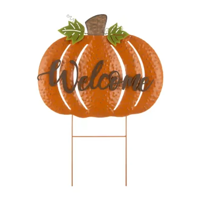 Glitzhome Fall Metal Embossed Pumpkin Thanksgiving Yard Art