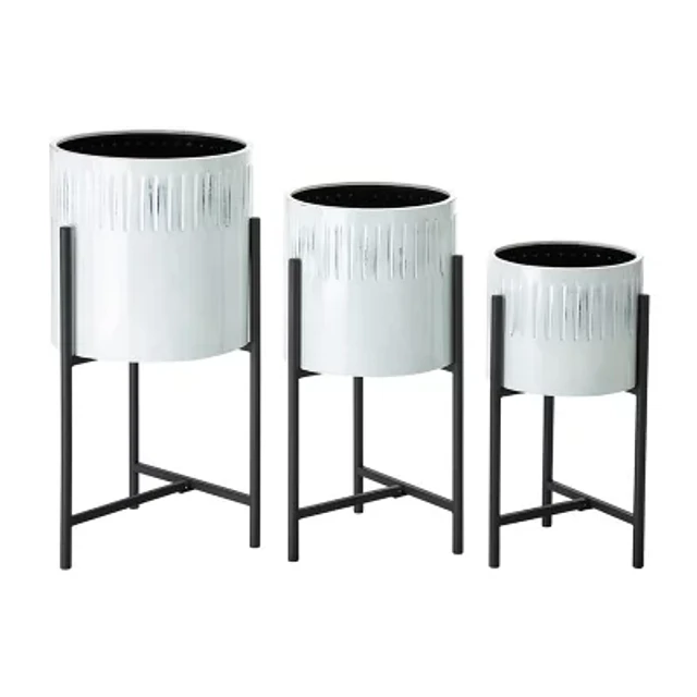 Glitzhome Set Of 3 Black Metal Planter Stands