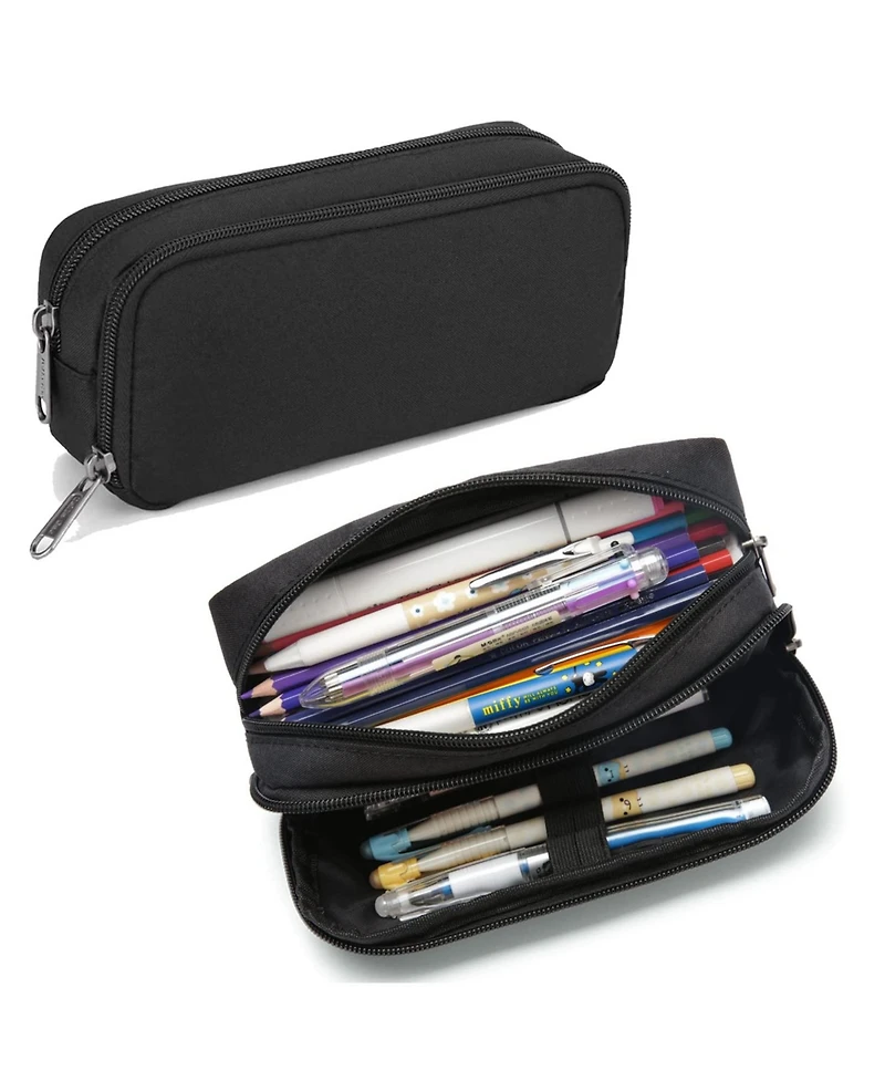 Made from lightweight nylon material that is water-resistant, tear-resistant and washable. Holds up to 70 pencils or pens, markers, eraser sticks and other stationery or electronic components. Features two compartments to separate and organize items, with a front pocket for frequently used pens. Can be used as a pen case, stationery bag, electronic products bag or small tools bag. Dimensions: 10""D x 4.4""W x 1.2""H. Weight: 0.18 pounds.