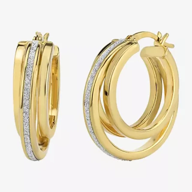 Silver Reflections Double Womens 24K Gold Over Brass 30.4mm Hoop Earrings
