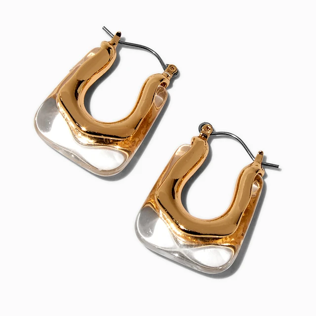 Gold-tone Clear Acrylic Square Hoop Earrings