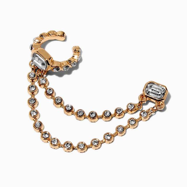 Gold-tone Crystal Swag Cuff Connector Earrings